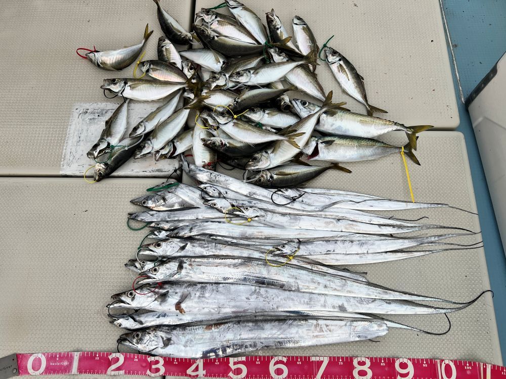 タチウオ 指4本までが30匹位、サバ 2匹でした。