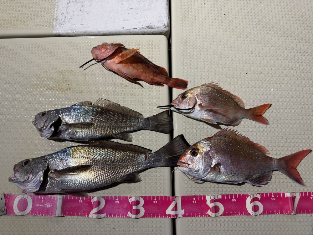 釣果は、マダイ 37cmまでが2匹、